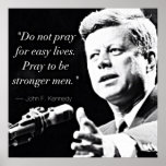 A black and white image of John F. Kennedy, the 35th President of the United States, with a quote attributed to him. The quote reads, 'Do not pray for easy lives, pray to be stronger men.' The image is a portrait of Kennedy with a serious expression, wearing a suit and tie, and is positioned in front of a microphone. | John F Kennedy Motivational Strength Quotes Poster | aa0d6dca508bc9c4790cffed2573e0c867dee04f8de4948ed4cbd9bcecc938ce | 000910678958 | 0 | 0 | 60 | 7 | 0 | 0 | |
