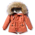 A close-up of a child's orange winter jacket with a fur-lined hood. The jacket has multiple buttons and a zipper, and the fur lining is visible inside the hood. The jacket is against a white background, and the focus is on the texture and details of the fabric and fur. | Thick Winter children jackets Girls Boys Coats Hooded Faux Fur Collar Kids Outerwear Cotton Padded Baby Girl Boy Snowsuit | c7d0d6478d8e03812e26544efe349e308b34630d5026a57ce9ca47b62bc0a880 | 000910679692 | 0 | 0 | 50 | 19 | 0 | 0 | |