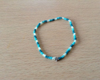 A blue and white beaded bracelet with a star-shaped charm is lying on a wooden surface. | Blue bracelet with asterisk | 8b16449caefd323c957a20b86074ea6c940270d792d21c4f6348b43c865b1fd8 | 000910679618 | 0 | 0 | 16 | 4 | 0 | 0 | |