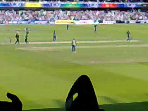 A cricket match is in progress with players on the field. The image is taken from a spectator's perspective, looking down onto the field. The players are wearing blue and green uniforms, and there are several advertisements visible around the field. The crowd is watching the game, and the atmosphere appears to be livel... | Twenty20 world cup 2009 essay | 3e40a4fcd7cbec64cd69e824d5acb5f4425dd9fd9de0cacc014b1fec3da5d0c9 | 000910679843 | 0 | 0 | 54 | 5 | 0 | 0 | |