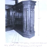 A black and white photograph of a wooden cabinet with intricate carvings and a door that is slightly ajar, revealing a dark interior. The cabinet is positioned against a wall with a wooden floor. There is a handwritten note at the bottom of the image, detailing the cabinet's dimensions and materials. | Solid Mahogany Corner Home Bar Furniture with Tiffany Glass Canopy Antique Replica | e89665e35731ddc040df7705b44c67dcc4b4258a99d25ae3af4fd3fa7c30f6d4 | 000910679769 | 0 | 0 | 51 | 12 | 0 | 0 | |