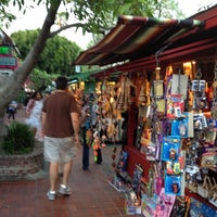 A man in a brown shirt and khaki shorts is walking on a brick sidewalk past a market stall with colorful items hanging and displayed. There are several people around, some walking and others browsing the market. The scene is set during the day with clear skies. | Photo taken at Olvera Street by Michael M. on 4/29/2012 | 7b9e6582bc765723cff29714f098d504aab0c7bf801cc1d09f594804a977a4b9 | 000910681025 | 0 | 0 | 47 | 10 | 0 | 0 | |