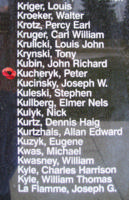 A memorial wall with a list of names and dates of birth and death. The names are in a foreign script, possibly Russian, and include individuals such as Krugger, Kulbursky, and Kuznetz. The wall is black with white text, and there is a red flower-like symbol on the left side of the wall. | Memorial\xe2\x80\x93 Flight Sergeant Peter Kucheryk is also commemorated on the Bomber Command Memorial Wall in Nanton, AB \xe2\x80\xa6 photo courtesy of Marg Liessens | 9463f32717e98af9897abd79a45b8f505a10993c8ba5fde401ad27f22d784b7b | 000910682122 | 0 | 0 | 53 | 23 | 0 | 0 | |