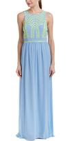 A woman wearing a blue dress with a green patterned top and a long flowing skirt. | Tahari by Arthur S. Levine Tahari Asl Maxi Dress | 577ee68556bf6319e803818ecb7fd3aa1aaaf3d0d0794756e56e22ddcab0304e | 000910682166 | 0 | 0 | 16 | 9 | 0 | 0 | |