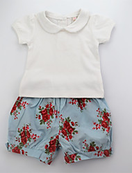 A white short-sleeved top with a round neckline and a small button at the center of the neckline is paired with blue shorts adorned with a floral pattern featuring red roses and green leaves. The top and shorts are laid out on a white background. | cheap -Girls' Daily Floral Color Block Clothing Set, Cotton Summer Short Sleeves Cute Active White Orange | d4975f04fe10ed83a478adf97d4dce7bb2dde39df8165f0b440fba23c7fe6f17 | 000910682768 | 0 | 0 | 45 | 16 | 0 | 0 | |