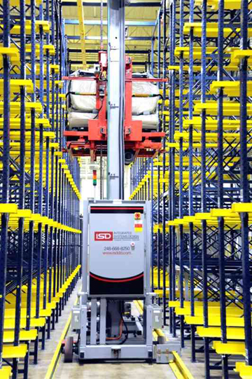 A modern warehouse with yellow shelving units filled with boxes. A red forklift with a white and black load is positioned in the center aisle, surrounded by the shelving units. The floor is clean and the warehouse is well-lit. | Asrs Ultrastore Integrated Systems Design World Industrial Reporter | 9a5deb86167cd78290d4129fadd724cd08b4e870a0c4f9c6b172c2a35bc5a63a | 000910682799 | 0 | 0 | 39 | 8 | 0 | 0 | |