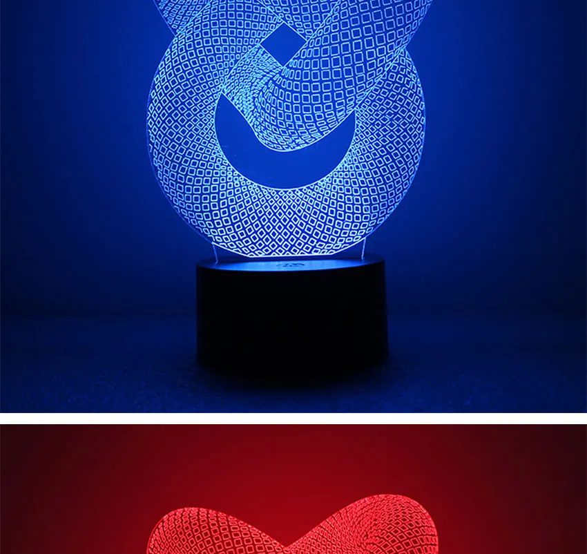 A geometric sculpture with a complex design is illuminated by a blue light, casting a shadow on a dark surface. | USB powered double heart isual illusion 3D night lamp LED lights with 7 colors changing Christmas gifts for kids children (10) | 8648473f1a4a0a68761a087d9613bf15deb4c4adce2e70542bf92869db8f1457 | 000910683044 | 0 | 0 | 20 | 21 | 0 | 0 | |