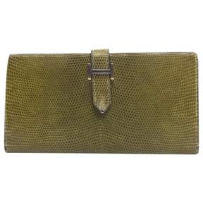 A green leather handbag with a textured surface and a gold buckle closure. | Hermes B\xc3\xa9arn lizard wallet - GREEN - STYLE | 8979f6ff50b9bdb6f9bcbb4f5f2a80e81765bd93dd581d424ceba9f2f4f85bd2 | 000910683085 | 0 | 0 | 13 | 8 | 0 | 0 | |