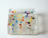 A transparent, square-shaped object with a glossy surface is filled with colorful, round, and irregularly shaped beads. The beads are scattered throughout the object, creating a vibrant and textured appearance. The object is placed on a white surface, and the lighting highlights the beads, giving them a shiny appearance. | Glass Coasters with Polka Dots Set of 4, Fused Glass Art, Retro Rainbow Modern Minimal Bright, Hostess Gift, Geometric Home Decor | ae9ea4487fc050fa6d966a88eabe6bf309f9850a6e1d316e59f40b4cefd38dfc | 000910682807 | 0 | 0 | 49 | 21 | 0 | 0 | |