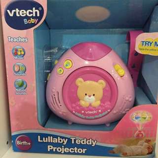 A pink and blue toy projector with a teddy bear design is displayed in a toy store. The toy is designed for children and has a 'Vtech' logo on it. The packaging includes a label with the name 'Lullaby Teddy Projector' and a tagline 'Teaches'. The toy is placed on a shelf with other toys in the background. | Vetch lullaby | 25f5a94d4675f8d465393d83fb27d7606151117ee1953af9502cd634698489a7 | 000910683032 | 0 | 0 | 58 | 2 | 0 | 0 | |