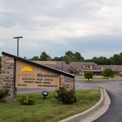 A school sign with the name 'Montessori Education' is visible in front of a school building. The sign is attached to a stone wall and features a logo with a sun and the words 'Montessori Education' written in a stylized font. The school building has a red roof and is surrounded by trees. The sky is overcast, and there is a street lamp to the left of the sign. | Community Montessori Montessori Schools 4102 Saint Joseph Rd | 857d0a1557aac2d837344c0b2111d3ff4ef4a3d6c05921af62cc00c38093f29f | 000720946599 | 0 | 0 | 69 | 8 | 0 | 0 | |