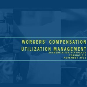 The image features a blue and green color scheme with a title that reads 'WORKER'S COMPENSATION UTILIZATION MANAGEMENT ACCREDITATION STANDARDS NOVEMBER 2021 VERSION 8.0'. The title is overlaid on a background with various images, including a hand, a wrench, and a car wheel, all in a stylized manner. | Workers Compensation Utilization Management v8 Standards | d1ce431075860e64d8ba90e66d7448887ee07f9e8e2861206daafea4681c0fa5 | 000720946438 | 0 | 0 | 48 | 6 | 0 | 0 | |