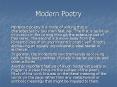 The first image displays a modern poem with a blue background. The text is in a sans-serif font and is centered on the page. The poem appears to be a reflection on the nature of modern poetry, with lines such as 'Modern poetry is a reflection of the world we live in' and 'It is a reflection of the world we live in, but it is also a reflection of the world we are trying to create'. The text is in a light color, which contrasts with the dark blue background, making it easy to read. | Modern Poetry PowerPoint PPT Presentation | b86d9aea442eb2275e6050aad07e7940194ee91464e79f72650c2f22e5979d16 | 000720946643 | 0 | 0 | 96 | 5 | 0 | 0 | |