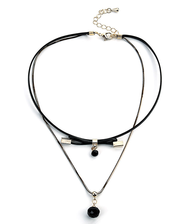 A black leather choker necklace with a silver chain and a small black pendant is displayed against a white background. | Womens geometric plating alloy Choker NHLL152652 | fe9aada910744617e0fc3f5d5acf9c6a2eb85d08e27c81d0b2cc53c598daf723 | 000720947269 | 0 | 0 | 20 | 6 | 0 | 0 | |