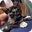 A small calico kitten with black, orange, and white fur is sitting on a blue cushion. The kitten has large ears and is looking directly at the camera with a curious expression. Its front paws are resting on the cushion, while its back paws are tucked under its body. | Photo 2 - Domestic Shorthair Kitten for adoption in Marseilles, Illinois - Paige's Calico Kitten | 444f545d74a12486fe5c33418958e80081ad725a3b73e5d7bfc48ba06bc0188e | 000720947402 | 0 | 0 | 49 | 15 | 0 | 0 | |