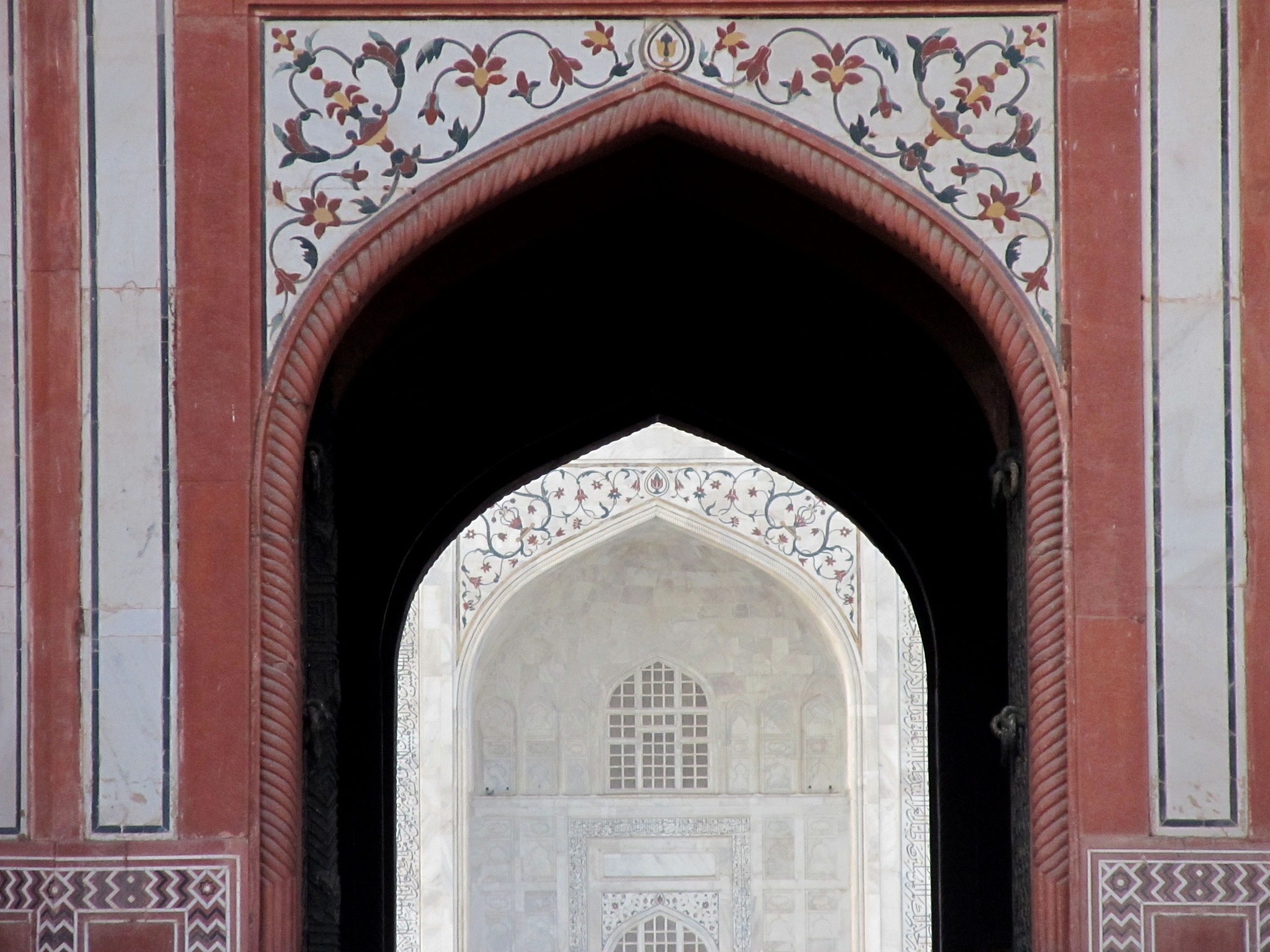A close-up view of an ornate archway with intricate white and red patterns. The archway is framed by a red wall with white and gold accents, and the interior of the arch is visible, showing a window with a grid pattern. | Taj Mahal India by annapoorna.sitaram | 09d578a1dda3508967380949ec45c33ecf22061955f0a0d013b011a061e96c83 | 000720947219 | 0 | 0 | 41 | 5 | 0 | 0 | |