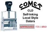 A promotional image for a product called 'COMET' with the text 'COLD SELF-INKING LOCAL STYLE DATER' and the date 'FEB 11, 2013'. The image features a black and silver ink pad with a black handle, and the word 'COMET' is stylized in red and black at the top. The background is white, and the overall design is clean and modern. | CLD Local Style Daters | c1b12772eddeb610c5edb743aa0709eb61b8841927e1ee84235e373ab80648cb | 000720947262 | 0 | 0 | 60 | 4 | 0 | 0 | |