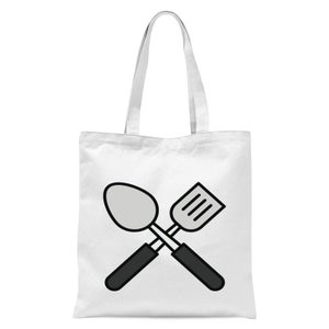 A white tote bag with a black silhouette of a spoon and a fork crossed over each other in the center. | Cooking Spatula And Spoon Tote Bag | c709df0508f09a55c2c04ae0f2fc7d522154730557ab021d5d144cc0bb86cc4c | 000720947549 | 0 | 0 | 21 | 6 | 0 | 0 | |