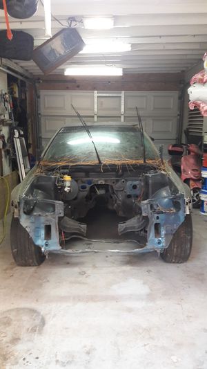 A car with a damaged front end is parked in a garage. The car's hood is open, revealing a tangled mess of wires and debris inside the engine compartment. The front bumper is missing, and the headlights are broken. The garage is cluttered with various items, including a skateboard, a surfboard, and a bicycle. There is also a television hanging from the ceiling and a workbench with tools on it. | 1997 Subaru Impreza L coupe for parts or whole for Sale in Miami Gardens, FL | 479b83d945211a9fbfafa04e685615b4d920dc1070924202a20e106630e5d659 | 000720947583 | 0 | 0 | 70 | 15 | 0 | 0 | |