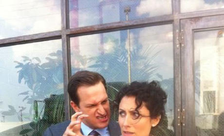 A man and a woman are standing in front of a window with a view of a building and a clear sky. The man is wearing a blue suit and the woman is wearing a white top. They are both making faces, with the man sticking out his tongue and the woman looking surprised. | Josh Charles and Lisa Edelstein | 36d4740202378986ea5e6d647065fb1a26b70b5e4ad8154cf90936498dcccf38 | 000720948905 | 0 | 0 | 54 | 5 | 0 | 0 | |
