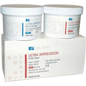 Two identical white containers with blue and red labels are placed side by side. The labels read 'ULTRA IMPRESSION' and 'BRACE PULPY NO'. The containers are on a white background with a box-like structure underneath them. | Ultra Impresion Putty VPS (B & C) 300ml | a0c36cf8b1023ea91d516053328a1f1a39e506913c4c77dcca23fd3e0d43528b | 000720948854 | 0 | 0 | 36 | 8 | 0 | 0 | |