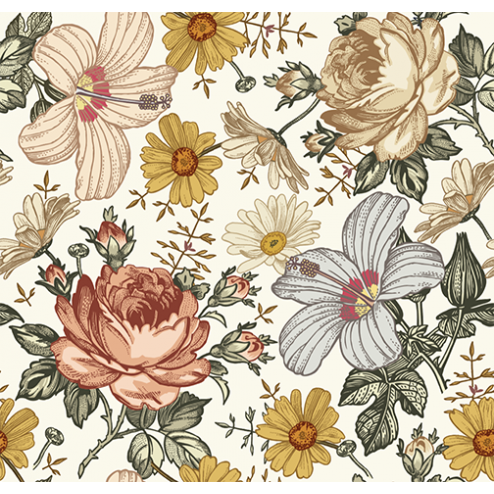 A detailed illustration of a variety of flowers, including roses and daisies, with intricate patterns and textures, set against a background of a floral wallpaper. | Vintage Wildflower Pattern | 8da93b571c42b8afdc1c6dfeeb7d858626447c4599eca1b5c7d55d4f8835201e | 000720949057 | 0 | 0 | 25 | 3 | 0 | 0 | |