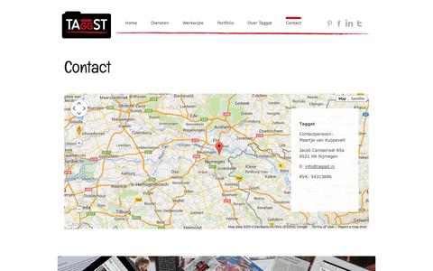 A website page with a map of a city and a contact form. The map is centered on a location with a red pin, and the contact form has fields for name, email, phone number, and message. The website's title is 'TAST' with a red and black color scheme. | Screenshot of Contact Page taggst.nl - Contact - Taggst - captured Oct. 27, 2014 | 9358bfbb164a59cb721a1ca1a47a906eb62a7e243555f76503ca04a0af4ebb4e | 000720949515 | 0 | 0 | 49 | 14 | 0 | 0 | |