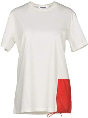 A white t-shirt with a red patch on the right side, featuring a tag on the collar, is displayed against a white background. | Jil Sander T-shirts | 7eb8ff50edc153c26558fd13b780c9e5de17cb8a58343db32272372f52327048 | 000720949724 | 0 | 0 | 23 | 3 | 0 | 0 | |
