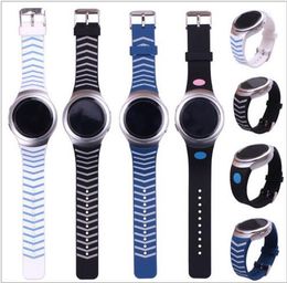 A collection of four different colored smartwatches is displayed against a white background. The watches have a modern design with a digital display and a touch-sensitive bezel. The colors of the watches are blue, black, pink, and white, each with a unique pattern on the band. The watches are arranged in a way that showcases their design and color variations. | Wholesale S2 Silicon - Watchband Luxury TPU Silicone Watch Band Strap For Samsung Galaxy Gear S2 SM-R720 Men Watch Bracelet VS Apple Watch Silicon Strap | 70eea9d02067a63e89ffde8f4cd27e185879424cb979f58c45d495a6f68a512c | 000720949671 | 0 | 0 | 60 | 25 | 0 | 0 | |