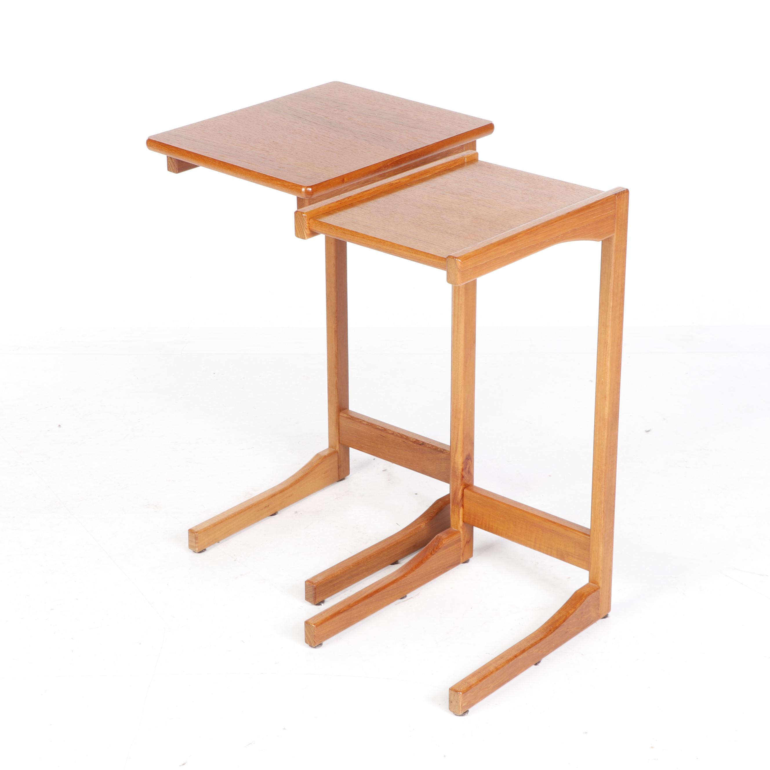 A wooden table with a broken leg is placed on a white background. | Pair of Small Danish Modern Wooden Cantilever Side Tables | 31369c71b2b04478703fe15d9d776f22e465bdd9d199b8b42a3a9cf9ed6615f0 | 000720950808 | 0 | 0 | 13 | 9 | 0 | 0 | |