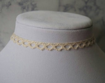 A delicate lace collar with a heart-shaped pattern is displayed on a white mannequin. The collar is beige in color and has a soft, intricate design. It is placed on a white surface with a subtle pattern, and the background features a textured wall with a light color palette. | Crocheted choker necklace | 35eadb6a14c34e19ebbb58570b080c442e4f140876992ed22c45d90108104bff | 000720951036 | 0 | 0 | 49 | 3 | 0 | 0 | |