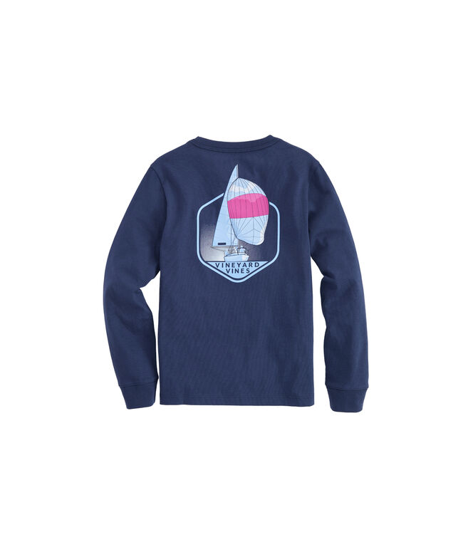 A navy blue sweatshirt with a graphic design featuring a sailboat on a circular emblem in the center. The sweatshirt has a ribbed collar, cuffs, and hem. The graphic is centered on the chest area, and the sweatshirt is displayed against a white background. | Boys Long-Sleeve Downwind Pocket T-Shirt | 6d43a7c79ab0784073da9b82181999973740dffc7e9f759813e9a11a30607cab | 000720950656 | 0 | 0 | 44 | 5 | 0 | 0 | |