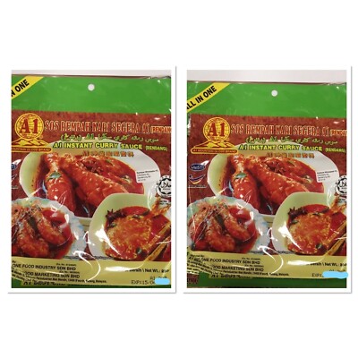 Two identical packets of food are shown side by side. Each packet has a green background with a yellow border and a red and gold emblem at the top. The packets are labeled in a foreign script, possibly Chinese, and the contents appear to be a dish with meat and sauce. The packets are sealed with a clear plastic wrap, and there is a barcode and some text at the bottom of each packet. | 2 Pack A1 Mountain Globe Brand - Instant Curry Sauce (Rendang) 460gm \xe2\x80\xa2 9.50$ | ba45dea684014a798becad6992905aa78c115bf9656a2c1ad63e1b9a9185f70a | 000720951250 | 0 | 0 | 74 | 14 | 0 | 0 | |