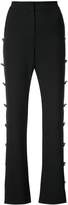 A pair of black pants with a zipper fly and button closure at the top, featuring a row of sharp, pointed spikes running down the outside of each leg. | Prabal Gurung button embellished flared trousers | 1462e28b1236baa94e500d52beb72a77c04d041402dfd9fe2f228584226f713a | 000720951352 | 0 | 0 | 29 | 6 | 0 | 0 | |