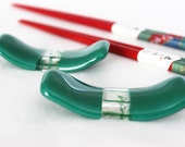 A set of three green and red chopsticks with white and green handles, each with a different design, are neatly arranged on a white surface. | GLASS CHOPSTICK RESTS - Teal Jade Green Fused Glass Chopstick Rests, Sushi Accessories, Chopstick Holders, Chopsticks, Unique Small Gift | 9b24867600673c1df3bae7914f57ab08b5ba553731178ed386984492503fd046 | 000720951142 | 0 | 0 | 25 | 19 | 0 | 0 |