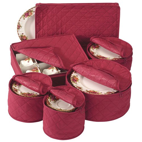 A set of four red quilted fabric storage cases, each containing a matching set of fine china dinnerware. The cases are arranged in a square formation, with each case open to display the dinnerware inside. The dinnerware includes plates, bowls, and cups with floral patterns. | HomyDelight Holiday China Storage Set 4 lbs 12'' - 13.5'' 4'' Cup Chest 11.5'' - 18'' by HomyDelight (Image #1) | e3b300e87f53e5ccfe5ee3bf8c3cbad90bd5d60c2828e5c93fcc43e23a42d1de | 000720951838 | 0 | 0 | 45 | 20 | 0 | 0 | |
