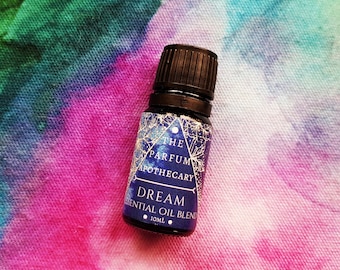 A small bottle of essential oil with a label that reads 'The Parfumier's Potentary Dream' and 'Dream - Essential Oil Blend' sits on a colorful, patterned cloth. | Dream Essential Oil Blend | f1d6e0c6bc9b2784bcc43c6163378ad95979de2153026c3adc59e76eaa1b36ea | 000720951644 | 0 | 0 | 27 | 4 | 0 | 0 | |