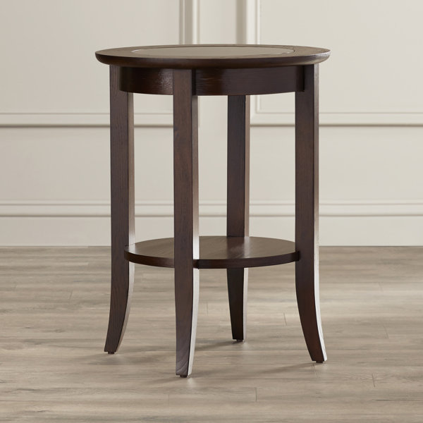 A wooden table with a round top and four legs is placed on a wooden floor against a white wall with decorative molding. | Wilfredo End Table By Charlton Home | 369d588b4008fb102643308474a96cc4093b09012f5a7b926e7b993afc682237 | 000720951829 | 0 | 0 | 23 | 6 | 0 | 0 | |