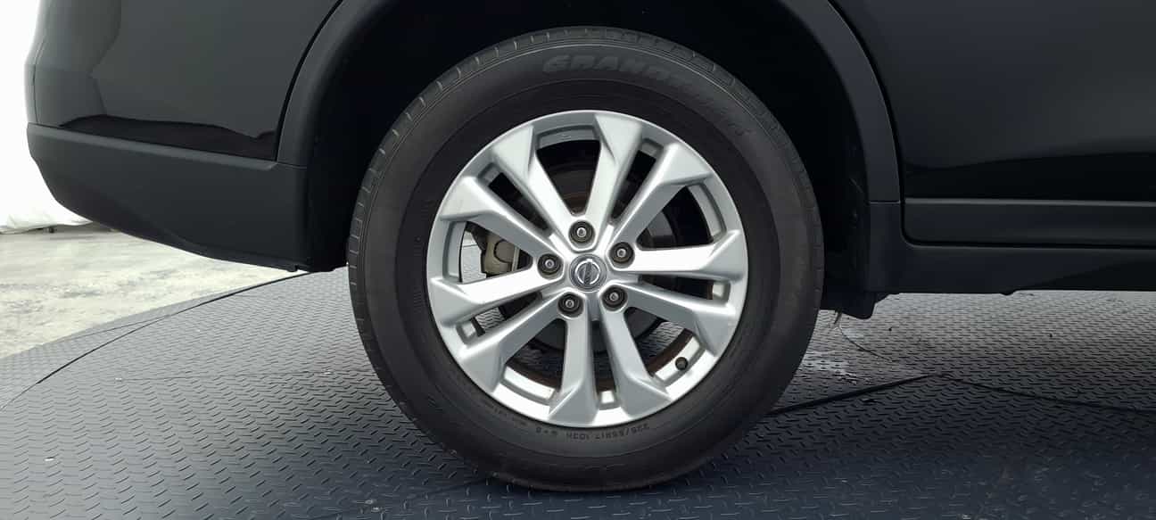 The first image shows a close-up of a car's rear wheel. The wheel is silver with a black rim and is mounted on a black tire. The tire is placed on a textured surface, possibly a rubber mat, and the car's bodywork is visible in the background. The wheel is centered in the frame, and the lighting suggests it is daytime. | used 2016 Nissan X-TRAIL CVT 2.0 | bfc7bae2e2d4ec7a7f2695410a4c5184d99e2dc23e4e5768c582b58ac076121b | 000720952051 | 0 | 0 | 61 | 6 | 0 | 0 | |