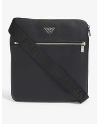 A black leather briefcase with a silver zipper and a black strap with the word 'EMBROIDERED' in white lettering. | Emporio Armani Logo Messenger Bag - Black | 63160b847f9da4cd19d9efe668fcc1b6a3a2d0c604abff9506db308b788d53d0 | 000720951632 | 0 | 0 | 19 | 7 | 0 | 0 | |