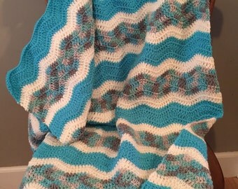 A blue and white knitted blanket with a zigzag pattern is draped over a wooden chair. | Baby Blanket | 4f5904b959f8aecca3e620d659c1237cc6b995c760cab98afa56907bb75dffab | 000720952150 | 0 | 0 | 16 | 2 | 0 | 0 | |