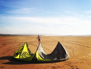 A person is standing on a sandy beach with a clear blue sky above. The person is wearing a white shirt and red shorts, and is holding a yellow and black kite. The kite is partially unfolded and is lying on the sand. The beach is empty, and there are no other people or objects visible in the scene. | 8 Days Unlimited Kitesurfing and Surfing Camp in Essaouira, Morocco | e49987459521304b9f01e10b4b2c48f442875b89cccd60f5c646e05cb167aa1e | 000720952227 | 0 | 0 | 59 | 10 | 0 | 0 | |