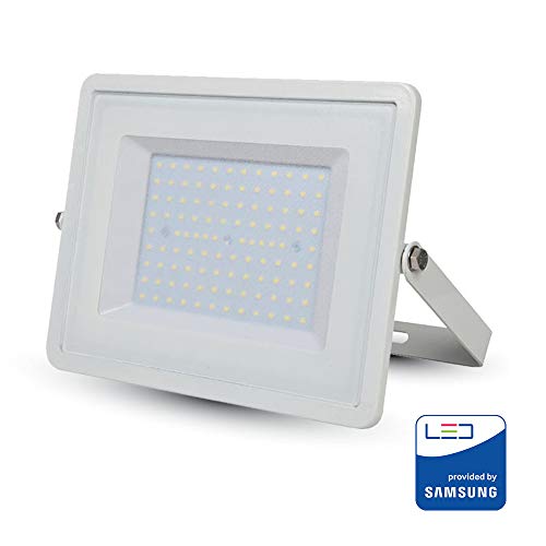 A white LED light fixture with a square shape and a flat back, featuring a single light source with a diffuser, is displayed against a white background. The fixture has a metal bracket on the back for mounting and is accompanied by a Samsung logo and a 'Provided by Samsung' label in the bottom right corner. | V-TAC 10W Waterproof Outdoor Security Floodlight with Samsung LED Black Body Grey Glass IP65 4000K Day White 800 lumens 10 W Die Cast Aluminium Energy Class A+ | 4b304e4647517cbf0bd252f5261b89dea212ee7c3b8a75eaee117fe751758d8c | 000720952314 | 0 | 0 | 56 | 27 | 0 | 0 | |