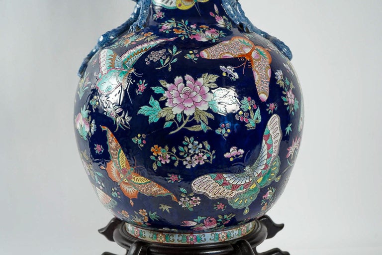 A blue and white porcelain vase with intricate floral and bird designs is displayed against a white background. | Important Chinese Cobalt Blue Vase with Butterflies and Lizards Decoration For Sale 4 | 26e3bdd5bd5bf02dfc343f991f2950581296820a09f0395206b9febebc233979 | 000720952639 | 0 | 0 | 18 | 13 | 0 | 0 | |