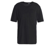 A black t-shirt with a plain design is displayed on a white background. The t-shirt has a round neckline and short sleeves. It is shown in a relaxed fit with a straight hemline. The fabric appears to be smooth and the color is a deep black. The t-shirt is not worn and is in its original state. | Embossed cotton-jersey T-shirt | 762a166b10d9f307210efa7cd55d86b541cd8dfd688b634b7216e12a2c433c3b | 000720952584 | 0 | 0 | 57 | 3 | 0 | 0 | |
