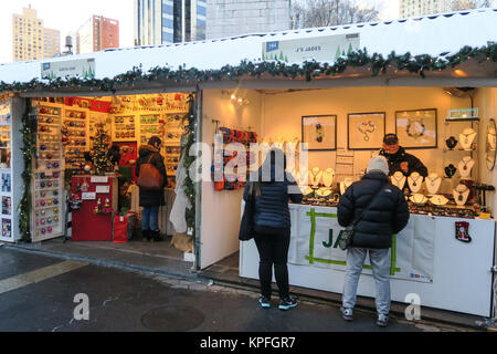 A bustling holiday market scene with a variety of people browsing and shopping. The market is adorned with festive decorations, including a wreath and garland. There are several stalls with different items on display, such as jewelry, ornaments, and other holiday-themed goods. The atmosphere is lively, with people of different ages and styles, some carrying bags and suitcases, indicating a busy shopping environment. | Holiday Market at Columbus Circle, NYC, USA - Stock Photo | dc66fb8e46ceb6d0946df6b88eebc0a4dd548aeadd7a471db12e5a32eb3df87d | 000720952617 | 0 | 0 | 63 | 10 | 0 | 0 | |