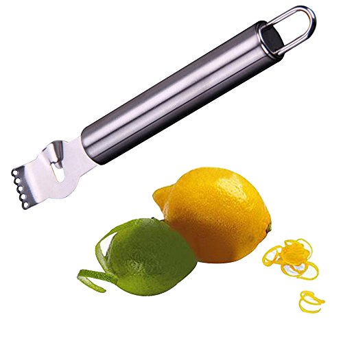 A stainless steel zester lies on a white background next to a whole lemon and a lime, with some lemon zest scattered around. | Ultra Sharp Stainless Steel Fruit Lemon Orange Citrus Grater Peeler Grips Peeling Knife Tool | 200adb43c4e5e83a40be8304f818a28f4d8a7dd904872b6d5dd43923cf8fc57e | 000720953074 | 0 | 0 | 23 | 14 | 0 | 0 | |