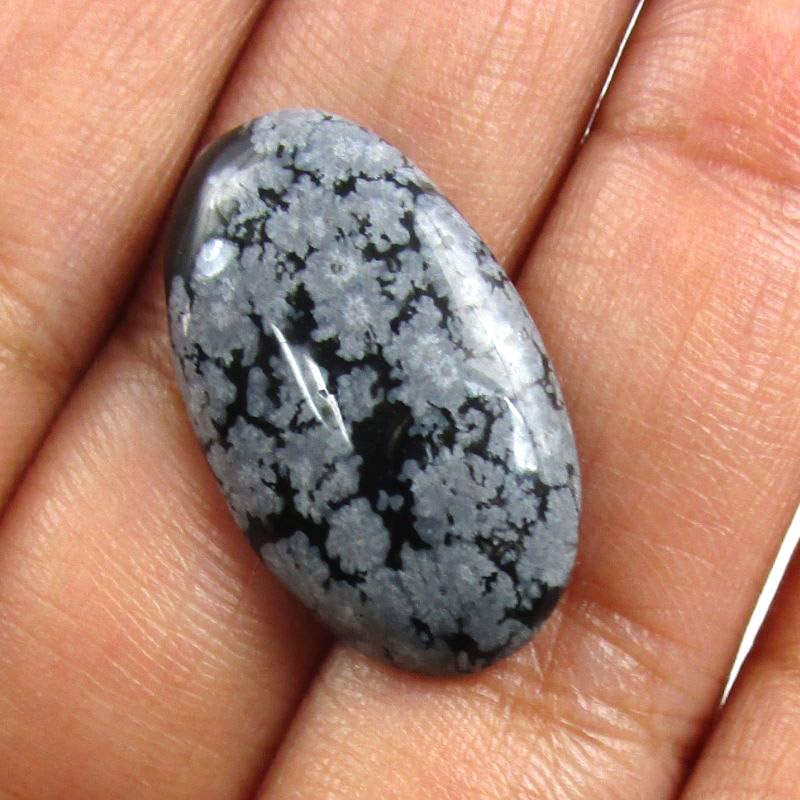 A hand is holding a smooth, dark grey stone with a pattern of lighter grey speckles and lines. | 12 30 carats snow flake jasper cabochon oval 25 mm x 14 mm | b69040e9bc1743d838d53762f580d4c32495b8b53c00910e44620112168a0f45 | 000720953110 | 0 | 0 | 18 | 13 | 0 | 0 | |