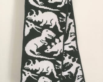 A black and white tie with a pattern of dinosaurs, including a T-Rex and a Stegosaurus, is displayed against a white background. | Amazing Dinosaur Scarf! | c88b246fdc9da5e5c970d3edc30db0889aa61eea0ce36dce6f627fe29f4f85f1 | 000720953685 | 0 | 0 | 22 | 3 | 0 | 0 | |