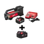A collection of power tools is displayed on a white background. The tools include a red and black cordless drill, a red and black cordless drill battery, a red and black cordless drill charger, a red and black cordless drill battery pack, and a black and red cordless drill battery pack. The tools are arranged in a way that suggests they are part of a set, with the drill and its battery placed on the left side, the charger and battery pack on the right side, and the battery pack in the center. | M18 18-Volt Lithium-Ion Cordless 1/4 HP Transfer Pump Kit W/ Free 5.0Ah Battery Pack | 7eb8c79ee9ec1049a6f202583027326c87a1ad208d0e0ab5345a4fdb60f57eee | 000720954523 | 0 | 0 | 93 | 14 | 0 | 0 | |